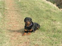 Im Alter von drei Jahren kam ich als Diensthund zu meinem Herrchen Torsten Distler, bei der Polizeihundestaffel in Calw – dem ich am Anfang ganz schön Sorgen bereitet habe. Ich war kein einfacher Rottweiler. Aber nach einiger Zeit haben wir uns zusammen gerauft und sind ein super Team geworden. Mein Herrchen konnte sich immer auf mich verlassen und wir sind einige Einsätze miteinander gefahren. Im Alter von 5 Jahren bin ich leider an Cauda-Equina erkrankt und musste operiert werden. Dank der guten Pflege von Torsten kam ich aber schnell wieder auf die Beine. Im April 2003 kam dann Miriam, Torstens Frau zu uns. Sie hätte gerne gleich Freundschaft mit mir geschlossen- aber wie gesagt, ich war kein einfacher und hab sie erst mal einige Wochen bewaffnet mit Saitenwürstchen in der Tasche nur neben mir spazieren gehen lassen, bis ich dann doch beschlossen habe sie zu mögen. Nur ihren Sohnemann Luca, den konnte ich gar nicht verknusen. Ich glaube ich habe in den ersten Jahren keine guten Erfahrungen mit Kindern und Menschen gemacht.